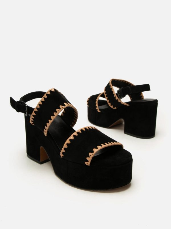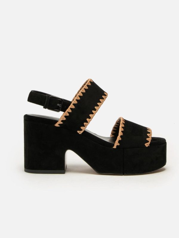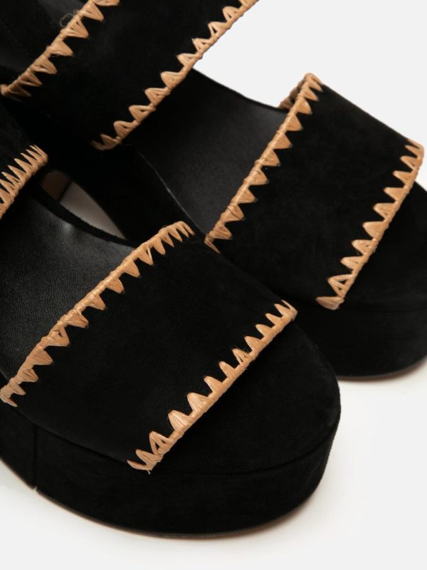 Sole: black suede goatskin covered platform, arizona sole, black edge