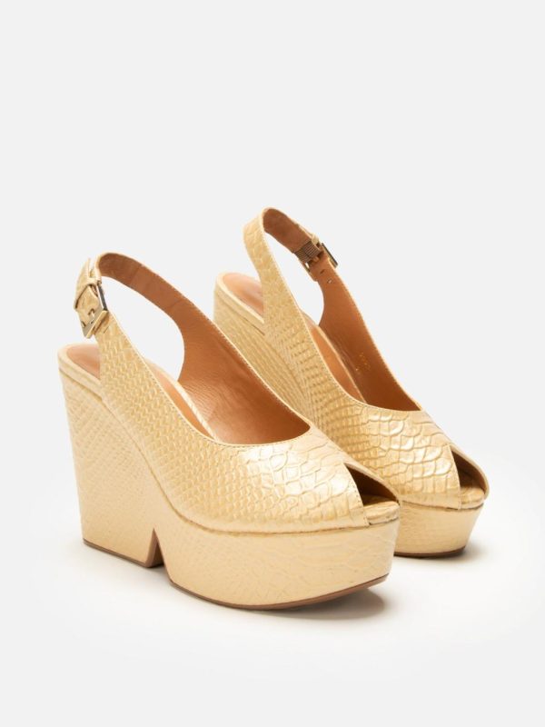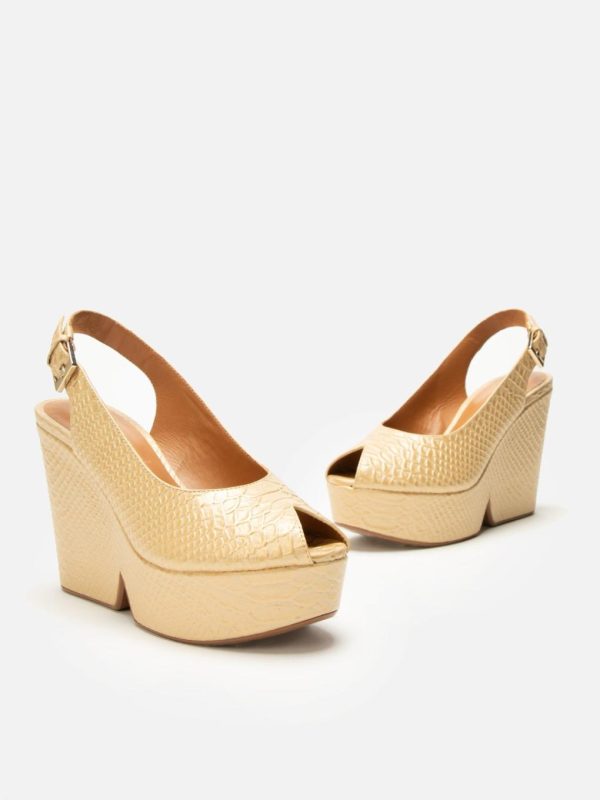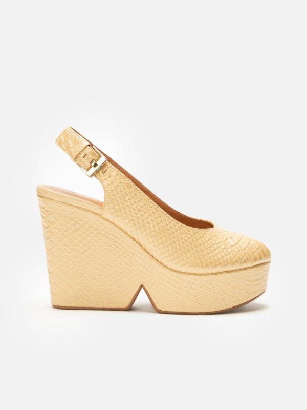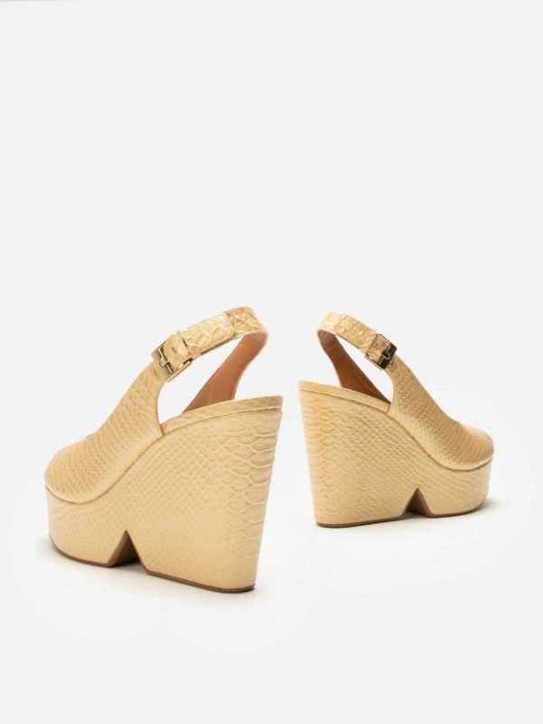Sole: nude snake effect iridescent lambskin covered platform, arizona sole, natural edge