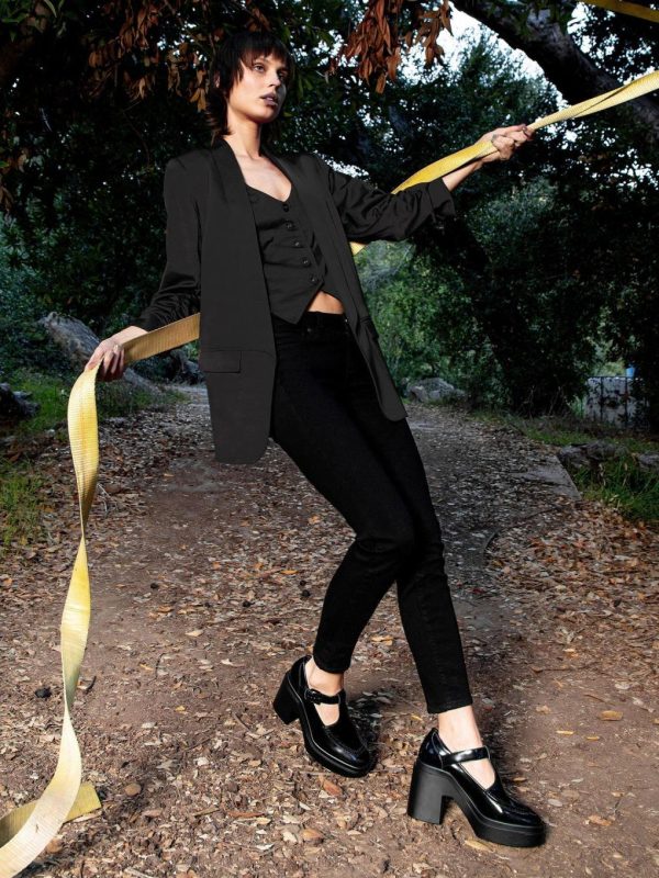 Sole: black rubber platform
