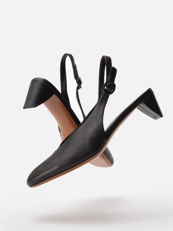 Sole: black smooth calfskin covered heel, amber leather sole, black edge