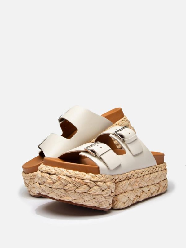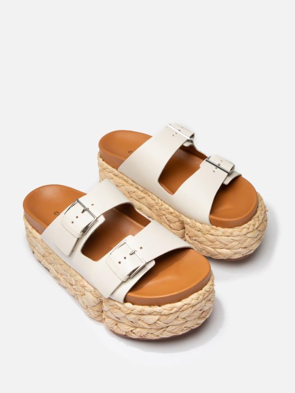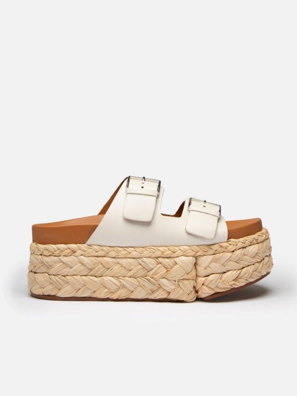 Sole: natural raffia covered platform, arizona sole, natural edge