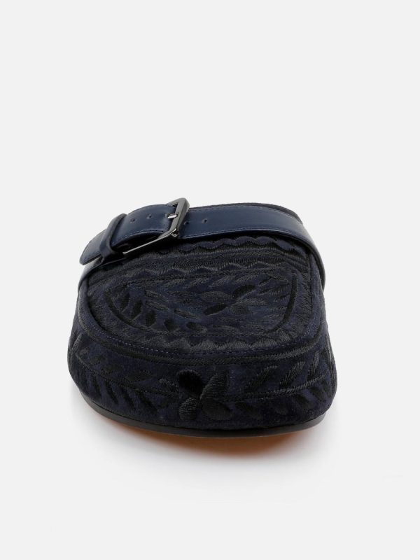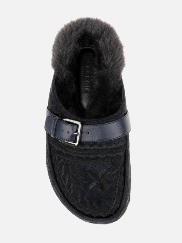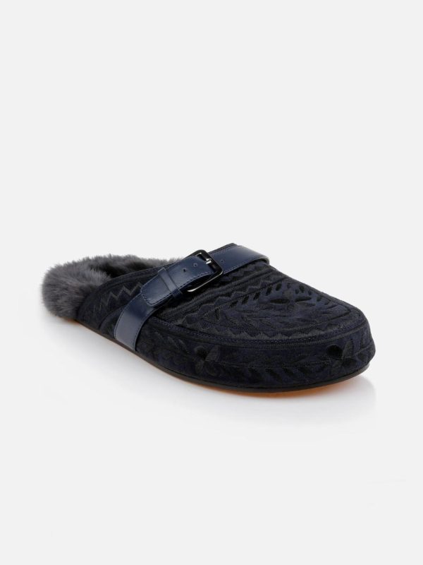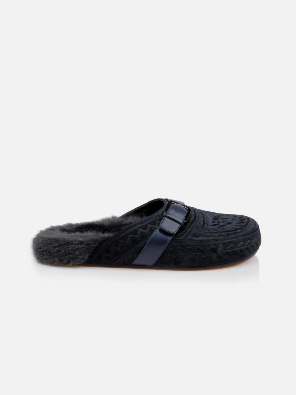 Upper: mineral suede goatskin, mineral smooth calfskin, black embroidery