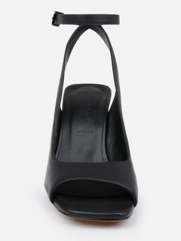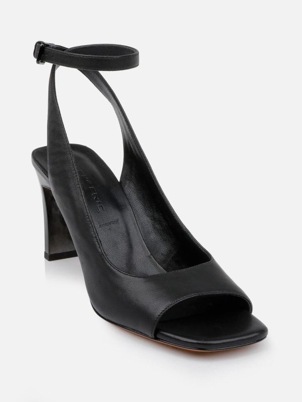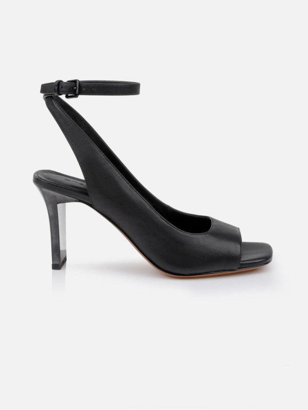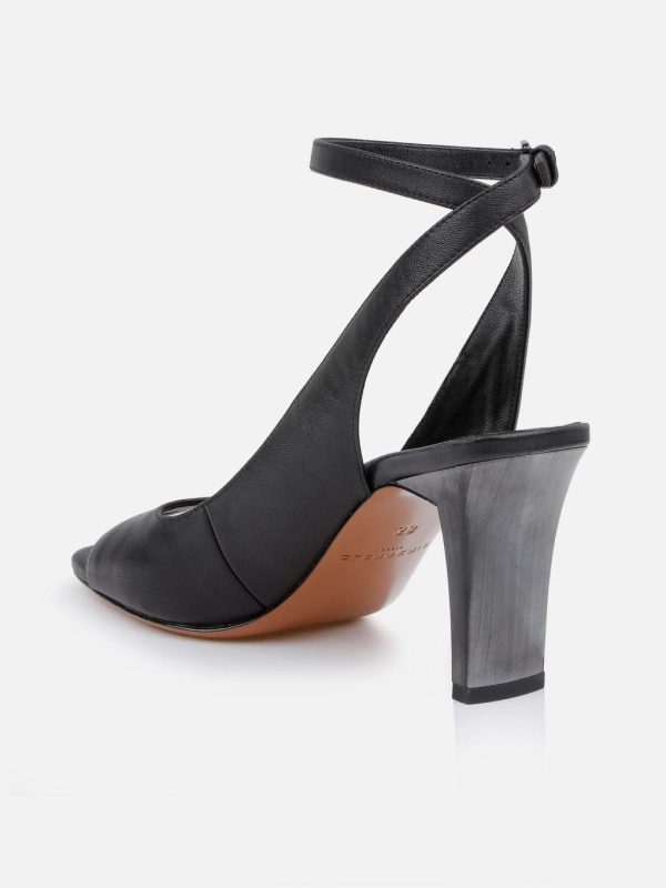 Sole: brushed gunmetal heel, amber leather sole, black edge