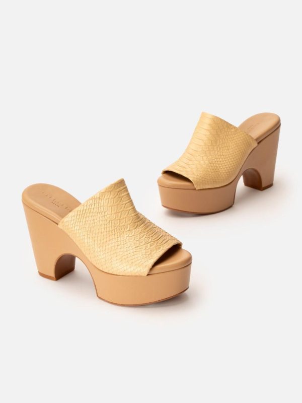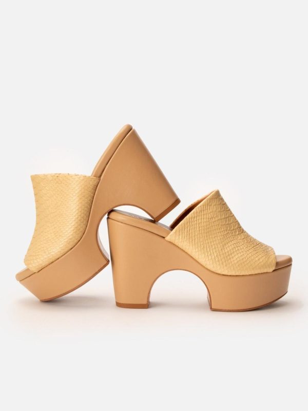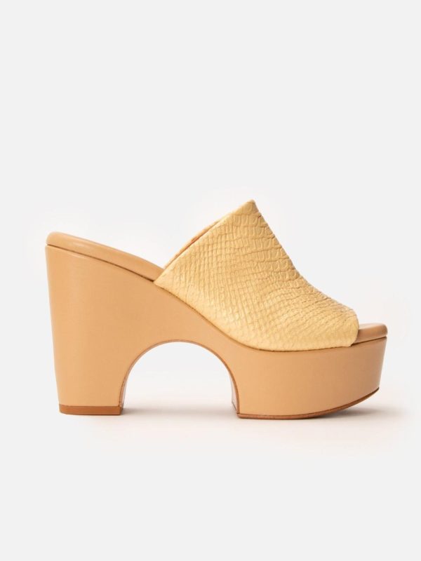 Sole: Nude lambskin covered platform, arizona sole, natural edge