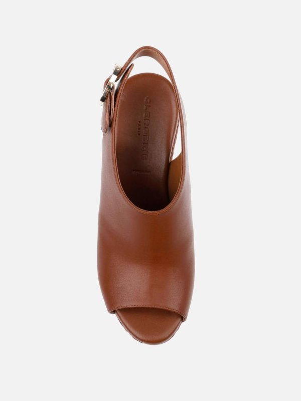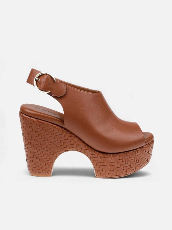 Sole: Wood braided lambskin covered platform, arizona sole, natural edge